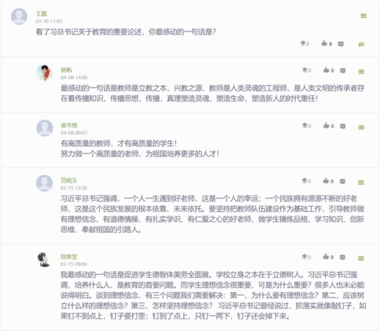 提升教學反思能力。培根鑄魂,啟智潤心。教學是一個長期動態過程,需要教師不斷地反思并且持續地推進育人觀念和育人方式,最終實現育人真諦。為進一步鞏固學習成果,數學與統計系評選出優秀“踐行師德”學習反思報告、優質簡歷及GeoGebra優秀作品,引導學生重溫研習過程、觀摩優秀作品、相互借鑒學習。學生們在學習通平臺上點贊本次活動之余也紛紛發表心得感悟,折射出他們對教師職業生涯規劃和教學方法的思考。院系將同學們的意見收納整理,以便于對研習設計的不足加以改進。
