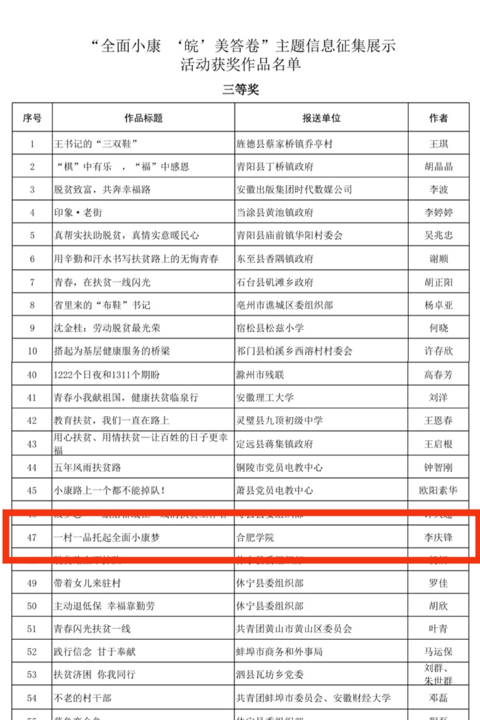 合肥學院學生榮獲“全面小康‘皖’美答卷”主題信息征集展示活動三等獎