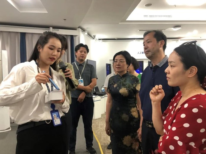 在科大訊飛人工智能展廳,科大訊飛歐美同學會副會長張武旭陪同參觀。大家親身體驗了科大訊飛自然語言理解、圖像識別等高科技產品,充分了解了智能語音和人工智能的各項技術成果在智慧教育、智慧醫療、智能汽車等領域的應用情況。