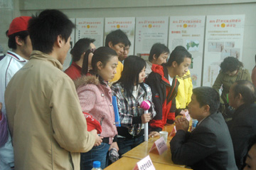 安徽省教育廳副廳長虞志方、合肥市副市長張雪平、安徽省教育廳學生處處長燕貴忠、安徽省大中專畢業生就業指導中心主任鮑勇及我院領導趙良慶、丁明等親自來到招聘會現場。省教育廳副廳長虞志方在招聘現場巡視時說:“多數畢業生已深切感受到了就業的壓力,求職擇業的期望值與社會需求逐步貼近,擇業更加理性、更加務實。”