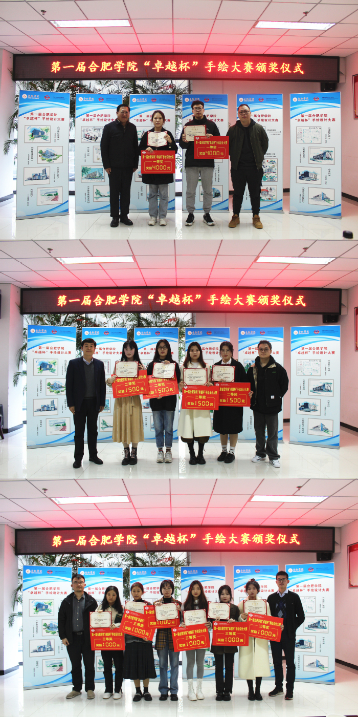 隨后,朱濤宣布了合肥學院第一屆“卓越杯”手繪設計大賽獲獎名單。參會嘉賓為獲獎學生頒獎。