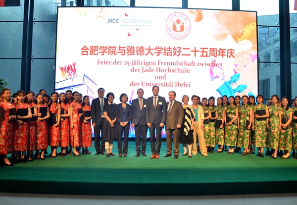 Am 26.Mai 2017 kam der nieders?chsische Minister für Wirtschaft, Arbeit und Verkehr, Olaf Lies mit einer Wirtschaftsdelegation zur Universit?t Hefei zu Besuch. Zu den Anl?ssen des Besuchs z?hlte die Teilnahme an der Er?ffnungszeremonie des LOGinCHINA Logistik 4.0-Labors, sowie die Feier der 25-j?hrigen Freundschaft zwischen der Jade Hochschule und der Universit?t Hefei.
