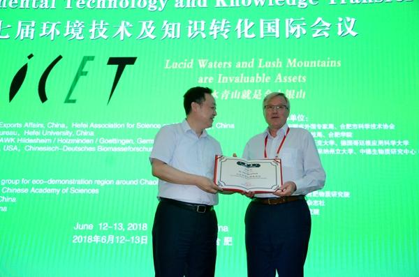 Am 13.Juni fand die Abschlusszeremonie der 7. Internationalen Konferenz über Umwelttechnologie und Transformation des Wissens im der Universit?tsbibliothek statt. Herr Prof. Dr. Cai Jingmin, Parteisekret?r der Universit?t Hefei, Herr Prof. Dr. Michael Nelles, Leiter des deutschen Biomasseforschungszentrums und Professor der Universit?t Rostock, und Herr Yu Zhongyong, Direktor des Verwaltungsbüros für den Chao-See nahmen daran teil.