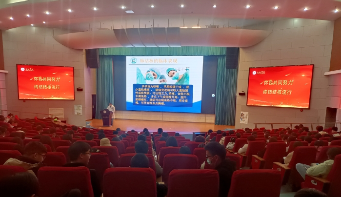 專題講座普及防治知識。活動邀請合肥市第三人民醫院辛捷醫師來校開展預防結核病宣傳教育專題講座,200余名學生參加。辛醫生結合臨床實踐,從肺結核的定義、臨床表現、預防措施、治療方法以及國家免費治療政策等方面進行了詳細講解,呼吁同學們勤洗手、多通風、強身健體,講座現場還發放了宣傳折頁和結核病防治知識調查問卷,進一步增強了學生對結核病的防治知識。