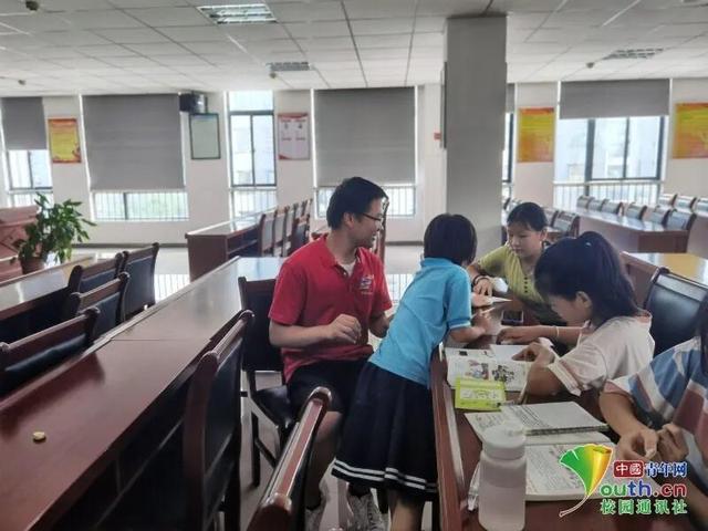 圖為團(tuán)隊(duì)成員輔導(dǎo)孩子暑假作業(yè)。 中國青年網(wǎng)通訊員 黃光輝 攝