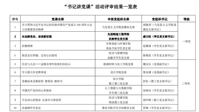 近日,合肥學院“書記講黨課”競賽活動開展情況評審結果出爐,本次比賽經過基層黨支部申報、各二級黨組織遴選把關,共推薦“書記講黨課”視頻19組,最終由我院機制學生黨支部書記威力旺老師報送的作品《永遠跟黨走 奮進新征程》獲得合肥學院“書記講黨課”一等獎。