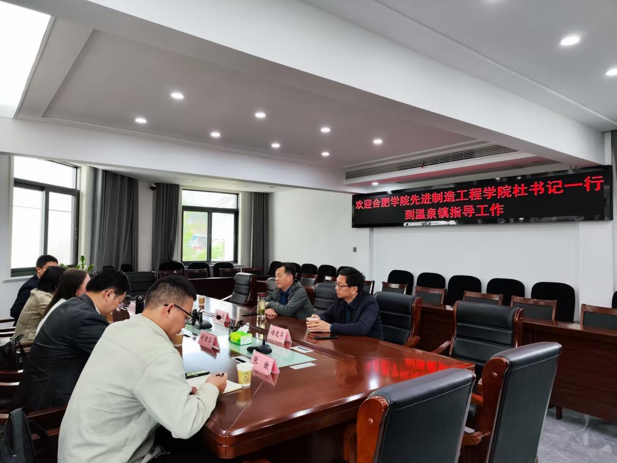 座談會上,溫泉鎮黨委書記洪星首先對先進制造工程學院領導一行的到來表示歡迎,隨后,通過溫泉鎮宣傳片簡要介紹了當地的區位資源、產業發展、旅游文化等相關情況。在談到我院畢業生徐亞根時,洪書記給予了高度的贊賞,并向合肥學院對優秀人才的培養表示感謝。徐亞根向老師們匯報了個人工作歷程、工作感悟和今后發展規劃,向母校的培養和老師們的關懷表示感謝。