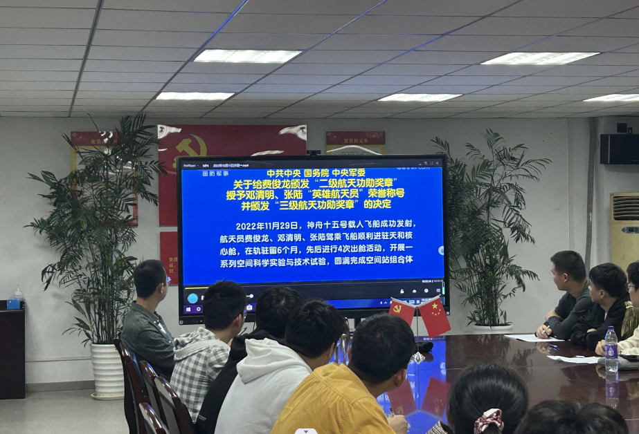 大會召開前,支部成員集中學習《中共中央國務院中央軍委關于給費俊龍頒發“二級航天功勛獎章” 授予鄧清明、張陸“英雄航天員”榮譽稱號并頒發“三級航天功勛獎章”的決定》。通過學習,支部員真切感受到在中國共產黨的領導下,我國科學技術的巨變,紛紛表示要以受到褒獎的航天員為榜樣,大力弘揚特別能吃苦、特別能戰斗、特別能攻關、特別能奉獻載人航天精神,發揚求真務實、真抓實干的作風,為學院各項工作高質量發展貢獻力量