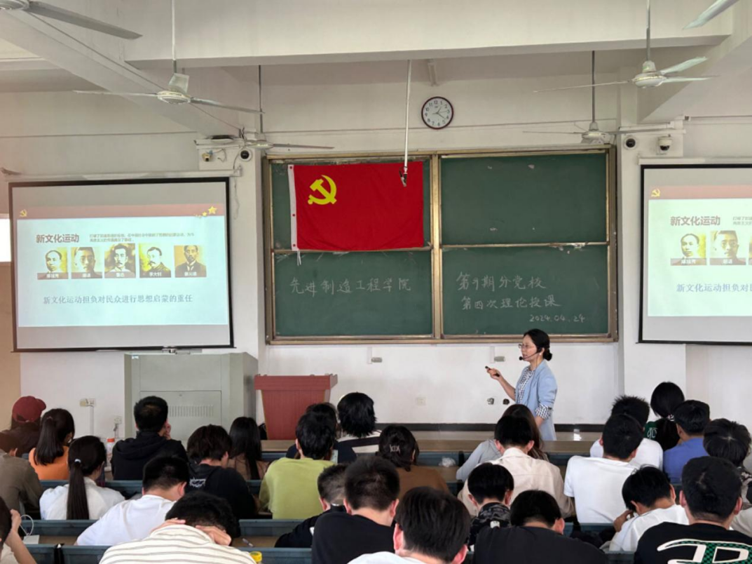 2023424日中午1240分,先進(jìn)制造工程學(xué)院分黨校第九期入黨積極分子培訓(xùn)班第四次理論授課于383階梯教室舉行,本次黨課由馬克思主義學(xué)院直屬黨支部書記、副院長蘇冰教授進(jìn)行授課,先進(jìn)制造工程學(xué)院分黨校第九期培訓(xùn)班共103名學(xué)員參加了本次課程,黨課主題是“百年大黨與民族復(fù)興”。
