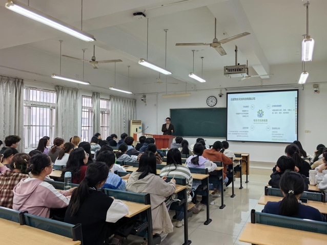 活動(dòng)伊始,盧方圓總經(jīng)理首先向同學(xué)們介紹了合肥駕車無憂科技有限公司的發(fā)展歷程、企業(yè)文化及在行業(yè)內(nèi)的發(fā)展前景。作為一家專注于智能交通與汽車后市場(chǎng)服務(wù)的創(chuàng)新型企業(yè),駕車無憂不僅致力于技術(shù)創(chuàng)新,更重視人才的培養(yǎng)與發(fā)展,為員工提供了廣闊的職業(yè)發(fā)展空間和多樣化的學(xué)習(xí)機(jī)會(huì)。隨后,盧方圓總經(jīng)理圍繞職業(yè)生涯規(guī)劃的主題,強(qiáng)調(diào)在快速變化的現(xiàn)代社會(huì)中,職業(yè)生涯規(guī)劃是每位大學(xué)生必須面對(duì)的重要課題。通過分享個(gè)人職業(yè)成長(zhǎng)的真實(shí)案例,盧方圓總經(jīng)理鼓勵(lì)同學(xué)們要勇于探索自我,明確個(gè)人興趣與優(yōu)勢(shì),結(jié)合行業(yè)趨勢(shì)和社會(huì)需求,設(shè)定短期與長(zhǎng)期的職業(yè)目標(biāo)。