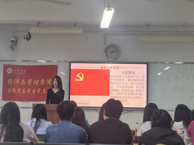 活動最后,國際貿易學生黨支部書記劉丹青表示,學生黨員一定深學細悟選讀等重點書目,及時跟進學習習近平總書記最新重要講話,在深化內化轉化上下功夫,筑牢帶頭做到“兩個維護”的思想根基,更扎實地掌握看家本領,不斷提高自身思想自覺、政治能力、業務水平,努力打造讓黨中央和習近平總書記放心滿意的堅強前哨和鞏固后院。