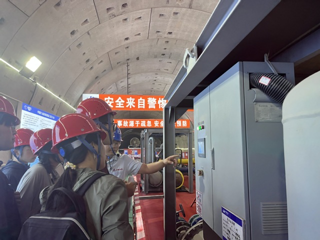 在工程現場,項目負責人員詳細介紹了S1線工程的背景、設計理念、施工技術及安全管理等方面的知識,使同學們對城市地鐵施工的前沿技術有了更加直觀的認識。實習過程中,同學們分組參觀了工程現場的不同施工區域,現場技術人員對地鐵隧道開挖、盾構機工作原理、基坑支護、聯絡通道凍結法施工等方面進行了詳細的說明。