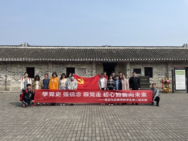 4月15日,為提升黨員、團員意識,增強黨支部活力,旅游與會展學院學生第二黨支部成員與18級人文地理與城鄉規劃班級成員共赴肥東縣渡江戰役總前委舊址紀念館開展學黨史強信念 跟黨走 初心如磐向未來主題黨日活動、團日活動,活動由學生第二黨支部書記蔡靈美和輔導員李娜老師帶隊