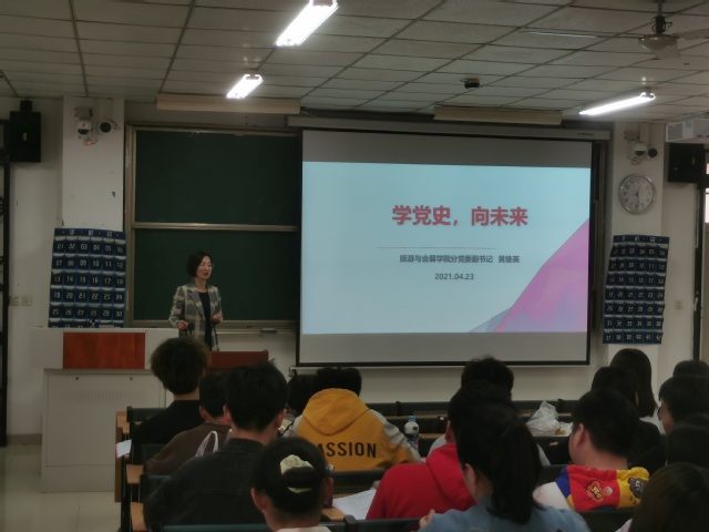 4月23日,旅游與會展學院第十九期入黨積極分子培訓班第五次授課在博學樓A座107教室順利開展。本次授課以“學黨史,向未來”為主題,由旅游與會展學院黨委書記黃雄英主講。