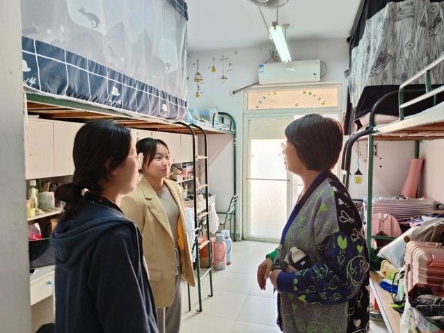 走訪期間,領(lǐng)導(dǎo)老師詢問(wèn)了封閉管理期間同學(xué)們的線上學(xué)習(xí)情況和生活需要,并查看了宿舍樓內(nèi)飲水機(jī)、洗衣機(jī)等設(shè)施情況,叮囑同學(xué)們要做好個(gè)人防護(hù),遵守疫情防控規(guī)定,同時(shí)保持積極的心理狀態(tài)和良好的宿舍衛(wèi)生,共同營(yíng)造安全有序的校園環(huán)境。走訪畢業(yè)生宿舍時(shí),領(lǐng)導(dǎo)老師們還詳細(xì)了解了學(xué)生的就業(yè)、考研等情況,詢問(wèn)大家的就業(yè)狀態(tài)和就業(yè)意愿,鼓勵(lì)大家把握秋招機(jī)會(huì),積極尋找合適就業(yè)崗位。