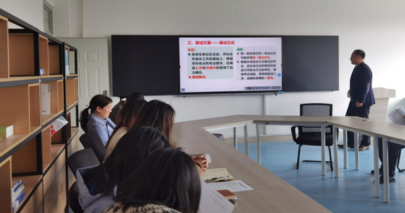 在復試工作的籌備階段,宋玉軍院長邀請研究生處副處長高大明對全院教師進行了復試工作的培訓,核查試題質量,明確各工作小組的職責事項。學院紀委對各項準備工作進行了嚴格的流程監督,確保復試工作的規范開展。學院組織全體復試專家、工作人員召開考前動員會議,由陳丹老師組織布置,明確工作職責和工作要求,并就復試各項工作進行模擬演練,通過實地演練熟悉操作流程,提前發現并解決復試過程中可能存在的問題。