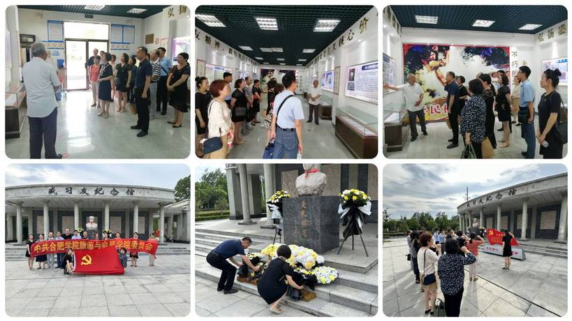 隨后,旅游與會展學院黨委組織教工黨支部赴合肥市盛習友紀念館接受黨性教育。在紀念館內部,黨員們認真聆聽紀念館負責人同時也是盛習友同志的侄子盛老先生對于盛習友相關英雄事跡的詳細介紹,深刻地感受到了盛習友烈士高尚的人格魅力,認識到舍己為人、無私奉獻、全心全意為人民服務是每一個共產黨員該有的品格,并紛紛表示一定會以盛習友烈士無私奉獻的精神激勵自己不斷前行。參觀結束后,黨員教師們在紀念館廣場瞻仰烈士雕像,并向烈士敬獻了鮮花,表達了緬懷革命先烈,傳承紅色精神的決心。最后全體黨員重溫了入黨誓詞,再度感受作為一名共產黨員的責任感和使命感。