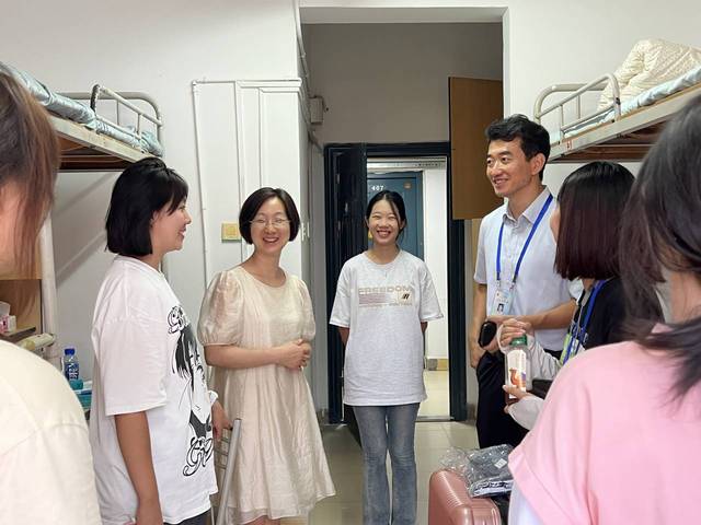 早上七點,志愿者來到報道集合點,為迎新工作做好準備,確保各流程分工明確,細致周到。引導組在香怡北門帶領新同學到指定地點報到和住宿費的繳納咨詢組負責新生的注冊,并收集檔案資料接待組的志愿者幫忙搬運行李,將新生帶到宿舍樓。迎新工作如火如荼,到處都是志愿者們忙碌的身影。烈日炎炎,來來回回的接送沒有使他們懈怠工作,依舊熱情接待每一位到來的新生,不厭其煩地回答每位家長、學生提出的各種問題。下午,旅游與會展學院黨委書記黃雄英、黨委副書記孫靜宇、學工辦副主任董敏深入新生宿舍開展走訪活動。學院領導老師與同學們進行了親切的交流,詳細詢問同學們的報到情況、入住情況和到校感受。