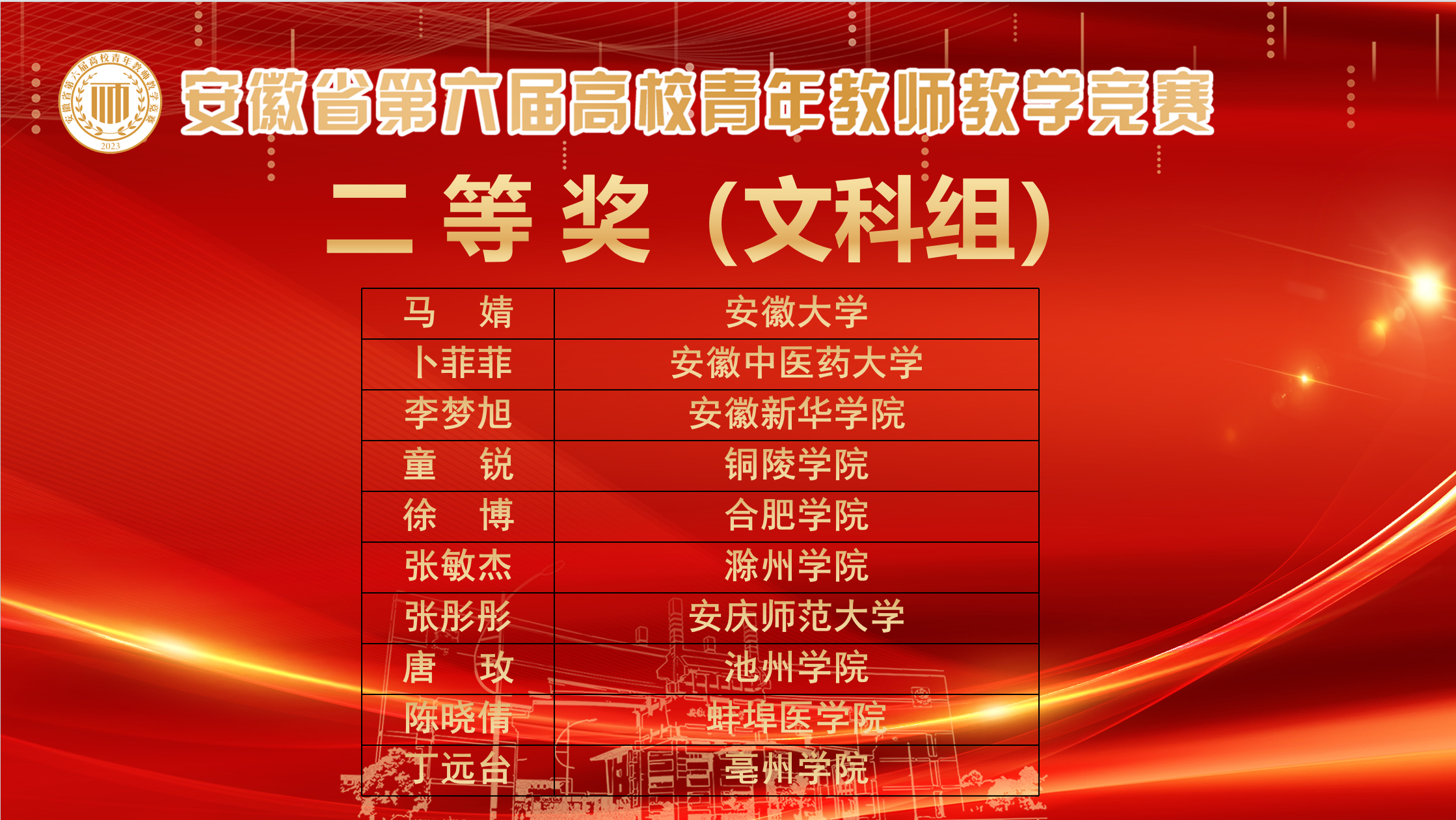 2023年8月18日,安徽省第六屆高校青年教師教學競賽落下帷幕。在文科組49名教師激烈角逐中,設計學院徐博老師脫穎而出,最終榮獲大賽二等獎。