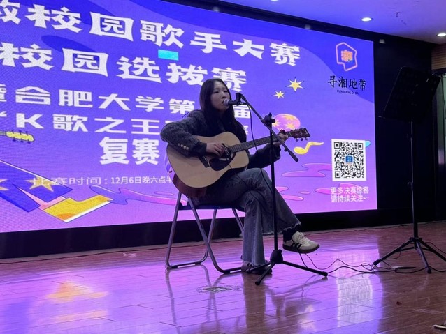 126日下午6:30,合肥大學在三區學生活動中心舉辦了尋湘地帶杯首屆安徽校園歌手大賽校園選拔賽暨合肥大學第一屆K歌之王復賽,比賽由語言文化與傳媒學院張欣悅主持。
